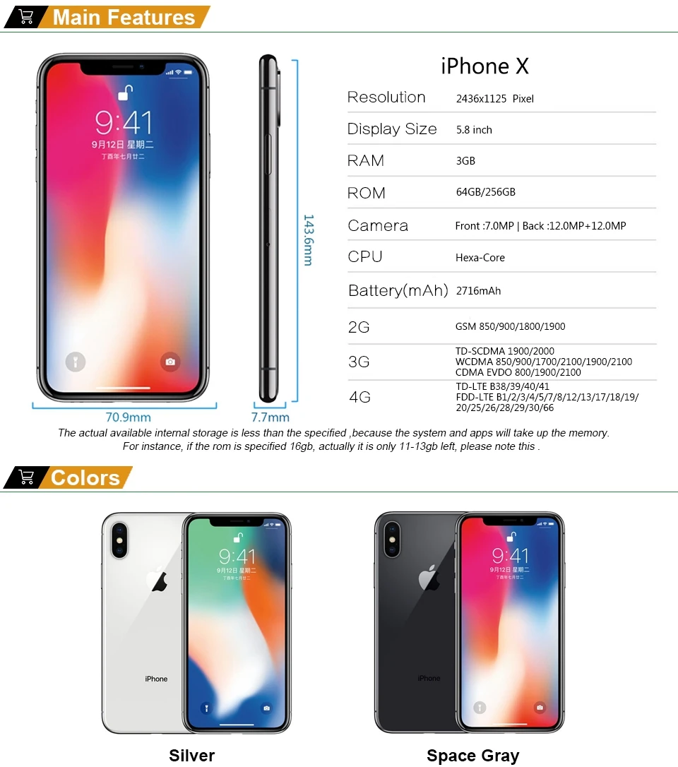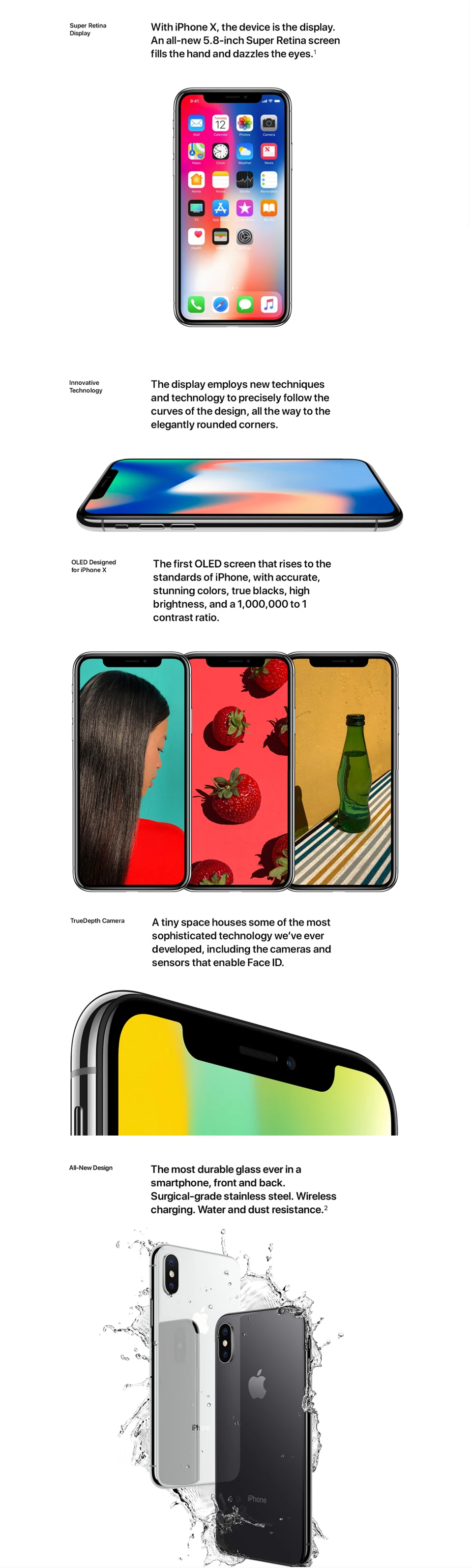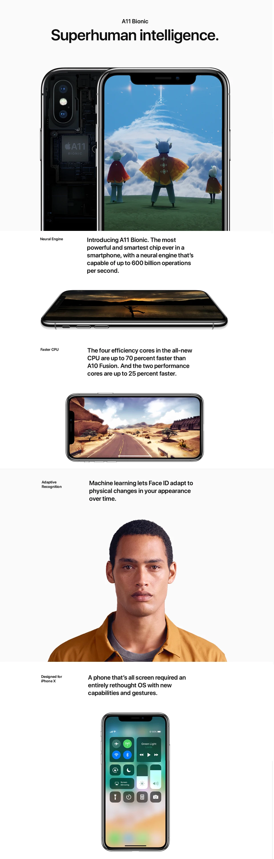 | Features | Sensors | Face ID, accelerometer, gyro, proximity, compass, barometer |