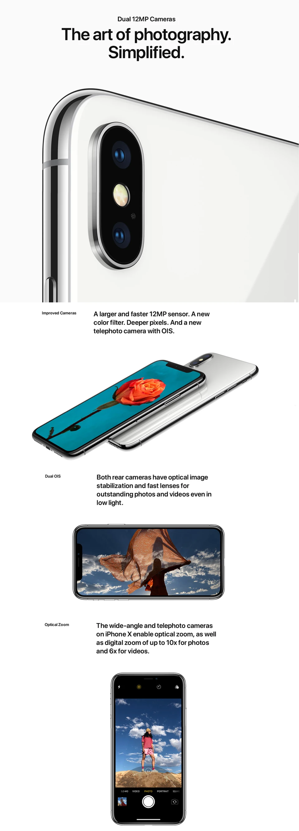 | Primary: | Dual: 12 MP (f/1.8, 28mm) + 12 MP (f/2.4, 52mm), OIS, phase detection autofocus, 2x optical zoom, quad-LED dual-tone flash | |