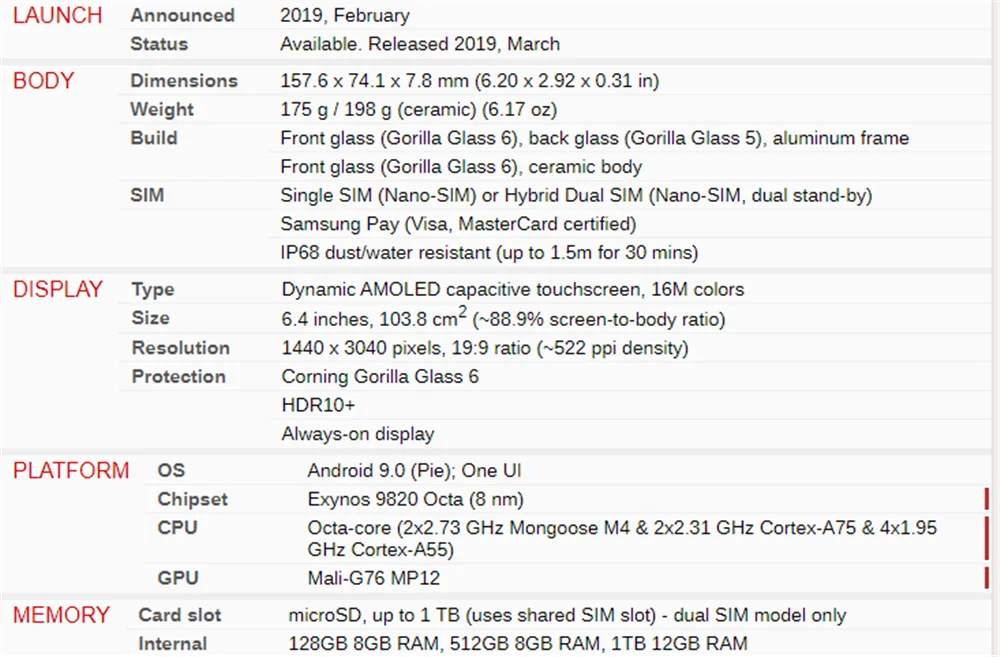 - SAMSUNG Model: Exynos 9820